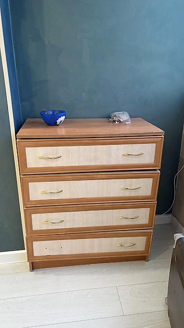 - Комод с четырьмя выдвижными ящиками на металлических ручках.