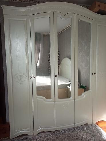 - Шкаф-купе/распашной 5-дверный с центральными зеркалами. Плавные волнообразные карнизы, фигурные фасады, резные вставки.
