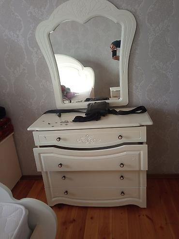 - Вместительная система хранения: секции со штангой и полками в шкафу, ящики в тумбе и комоде.