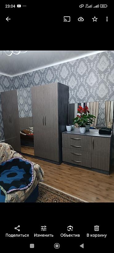 - Большое зеркало на шкафу визуально увеличивает пространство; второе горизонтальное зеркало над комодом — для туалетной зоны.