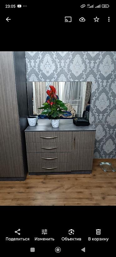 - Комод/тумба с зеркалом: четыре выдвижных ящика + боковое отделение с дверцей.