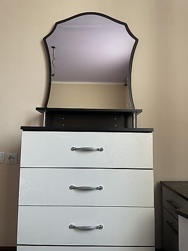 - Комод с 4 выдвижными ящиками и зеркалом на стойках.