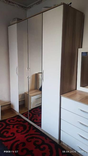 - Шкаф — трёхсекционный, полноразмерный с зеркалами.