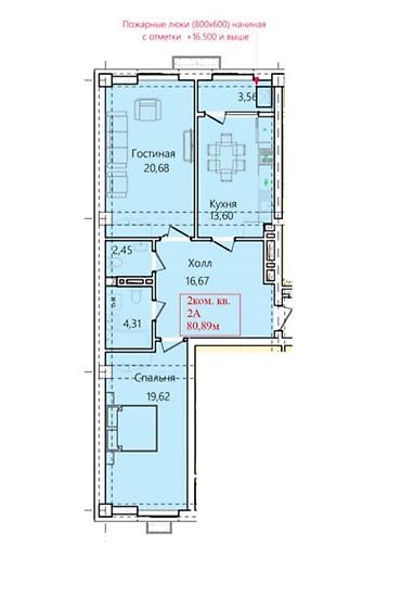 2 комнаты, 65 м², Элитка, 2 этаж, Готовая ПСО (под самоотделку)