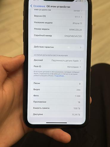 Продаю iPhone 11 на 128 GB Цвет черный АКБ 89% родной, не менялся Состояние нормальное Менялся только экран Комплект: телефон, зарядка, чехол, оригинальные наушники EarPods Lightning
