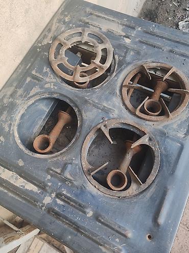 - 4 конфорки на чугунной панели: две с круглыми решетками, две с открытыми кольцами.