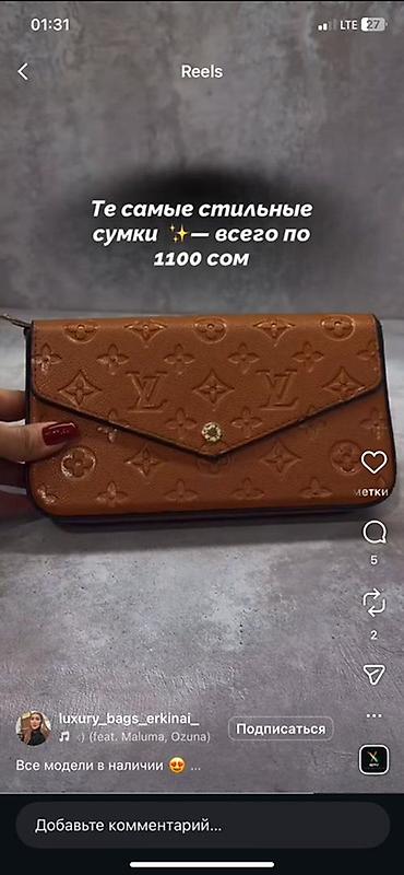 Указанная в объявлении информация на изображении: «те самые стильные сумки — всего по 1100 сом».