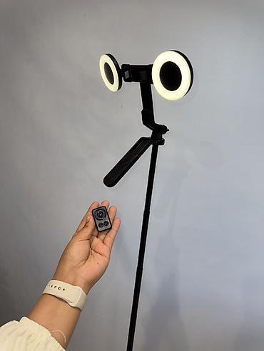 - Две разнесённые LED‑лампы обеспечивают равномерное освещение лица и предметов, уменьшают тени.