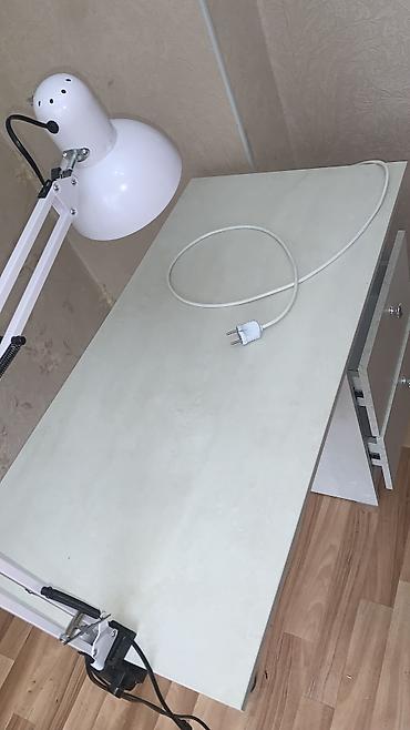 - К столу закрепляется поворотная лампа на прищепке/кронштейне (лампа на фото включена в комплект).