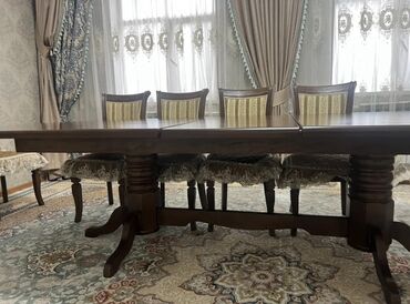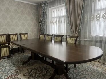 Продаю стул и стульями б/у почти как новый, дерево, размеры стол: 4м* 1.20; стул 10шт Цена: 75 000с