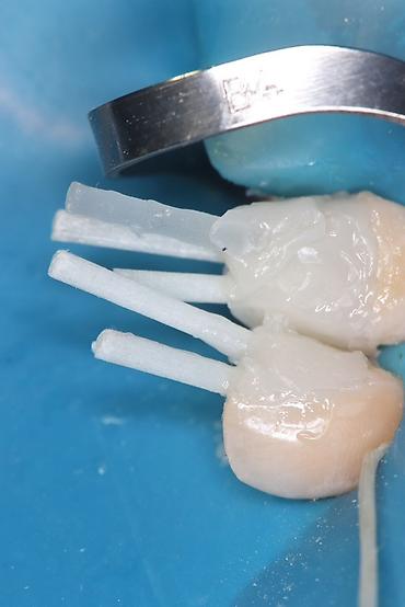 - Использование стекловолоконных штифтов для армирования и надёжной фиксации коронковой части.