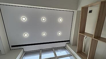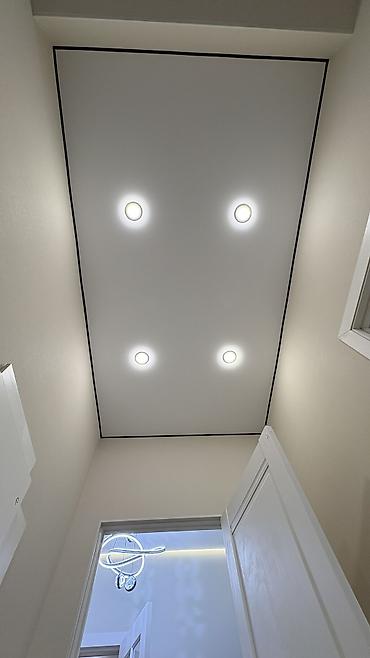 Натяжные потолки Натжныее потолок Натяжные потолок,Горот Бишкек Трековое освещение Сафиты,люсты ПВХ профил с чорной вставкой Карниз ПК 14=скрытый монтаж для эстетики окон Отличное освешение и тре...