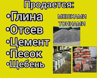 Цемент и инертные материалы Ассортимент: - Цемент в мешках - Песок - Отсев - Глина - Щебень Особенности: - Город: Бишкек (указан на изображении) - Доставка оплачивается отдельно в зависимости от ...