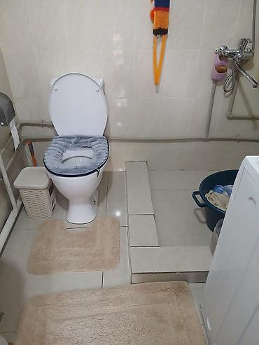 - Санузел совмещённый: унитаз, душевая зона на подиуме с лейкой, керамическая плитка на полу и стенах, коврики; подключена стиральная машина.