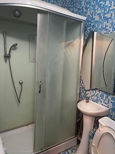 - Санузел с душевой кабиной, умывальником и унитазом, зеркало.