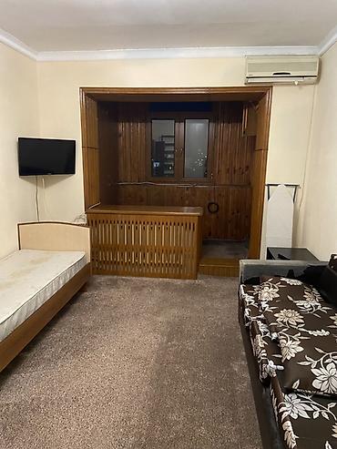 - Жилая зона с диваном, отдельной односпальной кроватью и настенным телевизором.