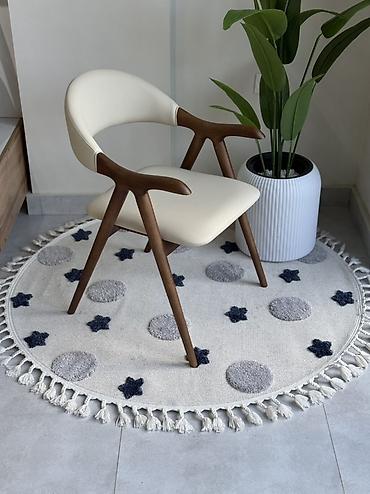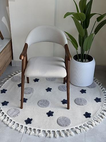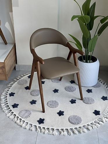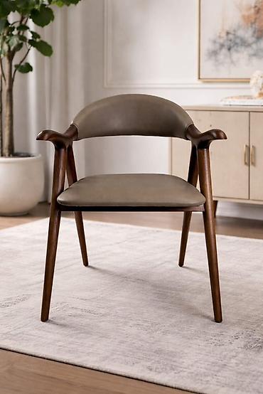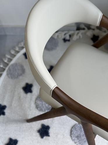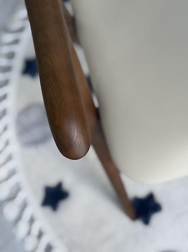 - Основание и ручки из массива дерева (теплый ореховый тон), устойчивые к нагрузкам, визуально легкие с тонкими коническими ножками.