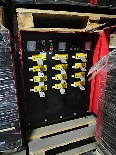 - Щит с силовыми шинами/выводами на фронтальной панели, аналоговыми измерителями и кнопками управления.