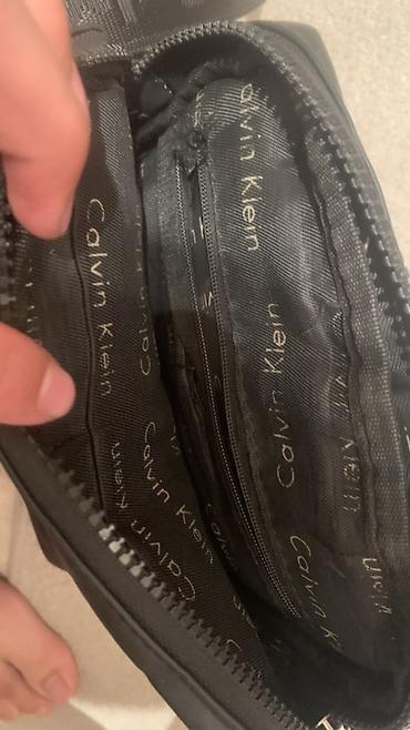 - Внутри подкладка с логотипами Calvin Klein и дополнительный карман на молнии + открытые секции для мелочей.