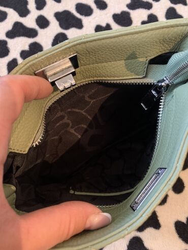 - Внутри: одно основное отделение (закрывается на верхний поворотный замок); фактура кожи сохранена и внутри кромок.