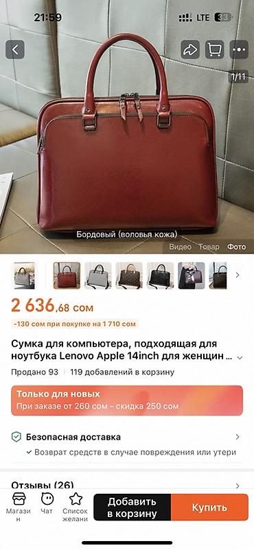 Сумка-портфель для ноутбука/документов, бордовая