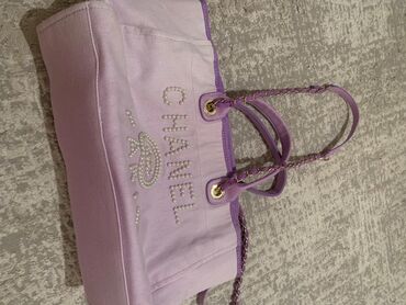 - Фурнитура: металлические люверсы и цепочки цвета золота, переплетённые лиловыми вставками; декоративные цепочки-ручки + мягкие верхние ручки для переноски.