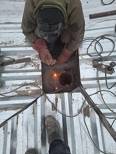 - Электросварочные работы любой сложности: провар металлоконструкций, закладные детали, усиление и ремонт перекрытий/настилов, монтаж и заварка отверстий, внедрение труб/гильз через профнастил и листовой металл.