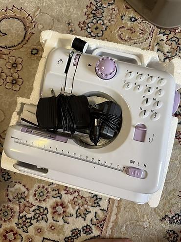 Мини-швейная машина (портативная, электрическая) практически новая Описание: - Компактная настольная швейная машинка, работает от сети (виден сетевой шнур). - Управление одной кнопкой на корпусе. ...