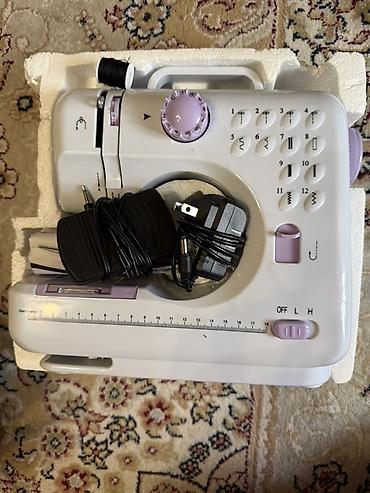 Электрическая швейная машина (Китай) Компактная настольная швейная машина белого цвета с сиреневыми элементами управления. Подходит для домашнего шитья, ремонта одежды и творчества. Основные особ...