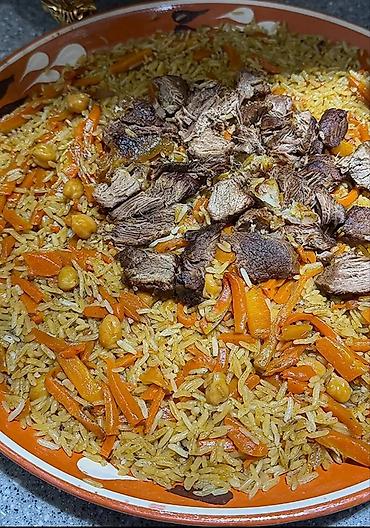 Плов манты лаган - Традиционный узбекский плов: рассыпчатый рис