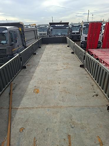 - Полуприцеп: бортовой/платформа с высокими металлическими бортами, трехосный, двускатные колеса, усиленные стойки и замки бортов