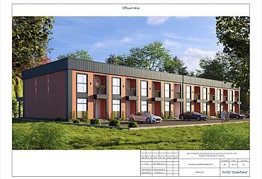 - Двухэтажные секции в современном комплексе таунхаусов.