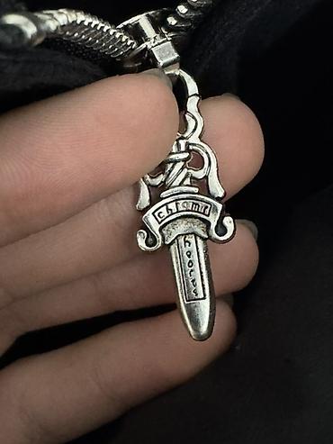 - Застежка: металлическая молния с массивным фирменным кулоном-брелоком в форме кинжала