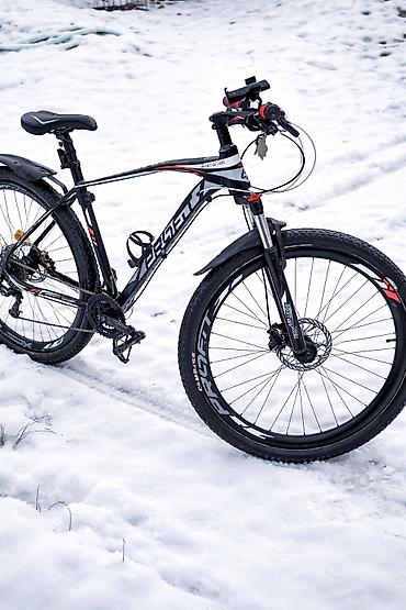 - Колеса 27.5" с широкими ободами и покрышками Compass для уверенного сцепления на грунте и снегу.