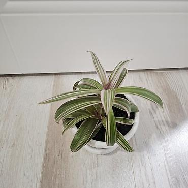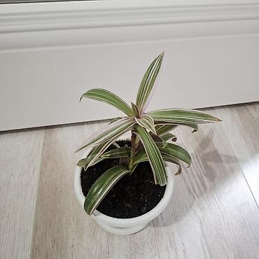 Традесканция сидячая вариегатная (Tradescantia spathacea ‘Variegata’) в горшке.