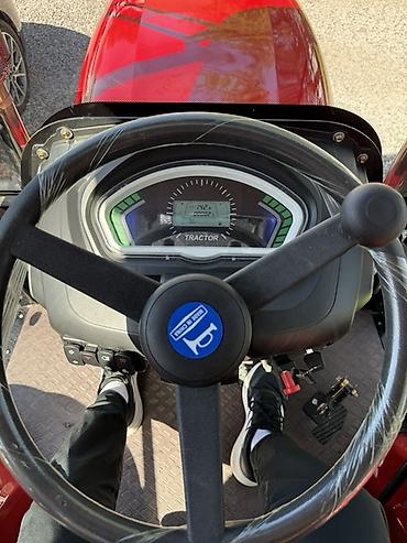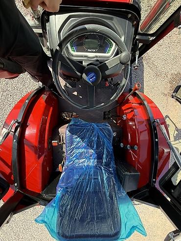 Подходит для вспашки, культивации, кошения, перевозки, коммунальных работ и эксплуатации с широким набором навесного инструмента. Цвет — красный с чёрными элементами, диски белые.
