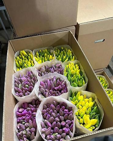 Тюльпаны оптом — предзаказ открыт. - Многообразие оттенков: розовые, жёлтые, красные, двухцветные. - Свежесрезанные, длинные стебли, плотные бутоны. - Возможна комплектация букетов с декоративным ...