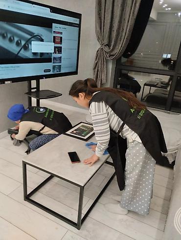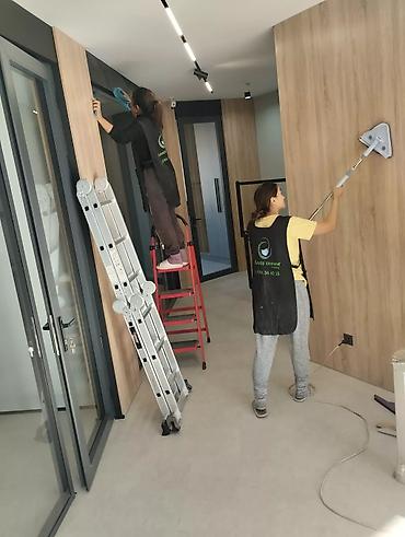 - Послестроительная/послеремонтная уборка: удаление строительной пыли, мойка стекол, рам и труднодоступных зон с использованием стремянок и профессионального инвентаря.
