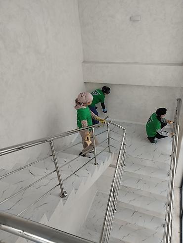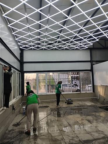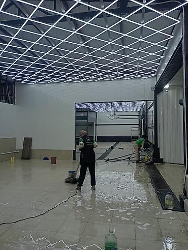 - Глубокая уборка после ремонта и строительных работ: удаление строительной пыли и следов растворов, мытьё стен и потолков, очистка стеклянных перегородок и витражей, полная обработка напольных покрытий.