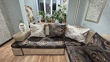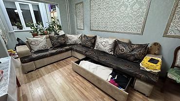 Продается большой угловой диван б/у. Длина-330см, ширина-170см, глубина-90см. В углу имеется ящик для хранения вещей. Диван раскладывается на двух спальное место. В комплекте имеются маленькие поду...