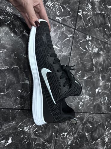 Сезон Весна/лето/осень по очень хорошей цене✊🏻 Кроссовки Nike (черные с белым логотипом и подошвой) - Легкий дышащий верх из сетчатого текстиля с поддерживающими вставками по бокам. - Фирменный Sw...