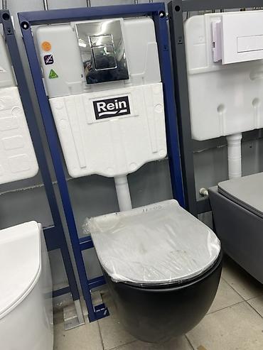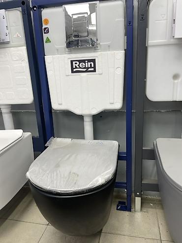 - Комплектация: рама инсталляции, скрытый бачок Rein, хромированная кнопка смыва, чёрная подвесная чаша, сиденье-крышка