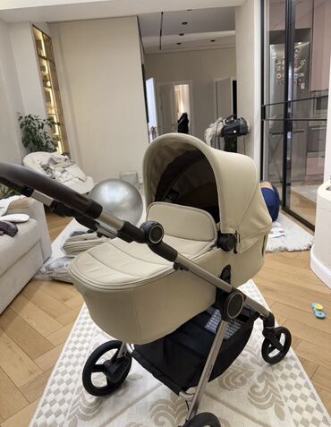 Универсальная коляска 2-в-1 (люлька + прогулочный блок) в бежевом цвете.