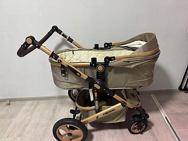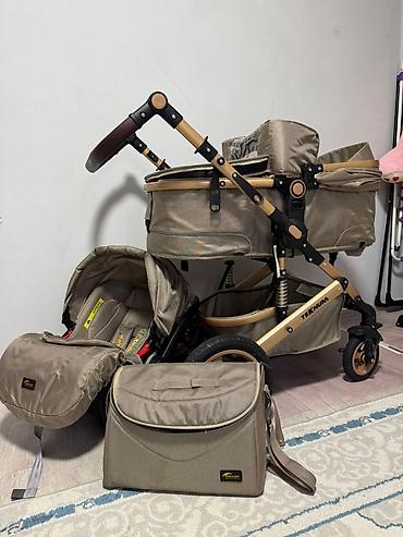 Универсальная коляска-трансформер Teknum 3 в 1 (бежевый тканевый комплект, рама «под золото»)