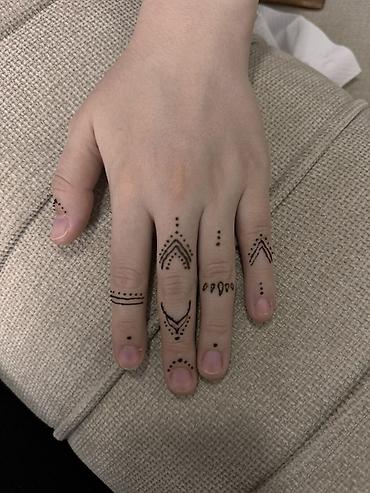 Роспись хной (мехенди) на кистях и пальцах.