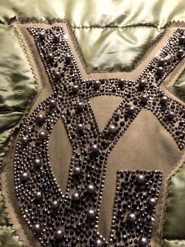 - На спинке крупный нашивной монограмма‑декор со стразами.