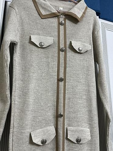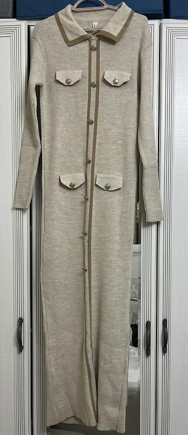 СРОЧНО ПРОДАЮ НОВОЕ ПЛАТЬЕ! Платье вязаное трикотажное, бежево-молочного цвета. - Длина: миди - Рукав: длинный - Ворот: отложной - Застежка: центральная планка на декоративные золотистые пуговицы...