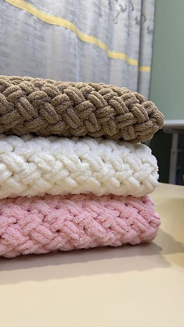 Вязаные пледы крупной фактурной вязки для новорождённых и детей.