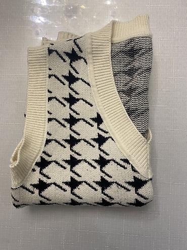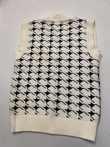 - Цвет: молочный с контрастным черно‑графичным узором «гусиная лапка».