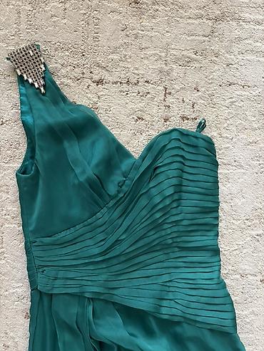 Вечернее платье из струящейся ткани бирюзово-изумрудного оттенка